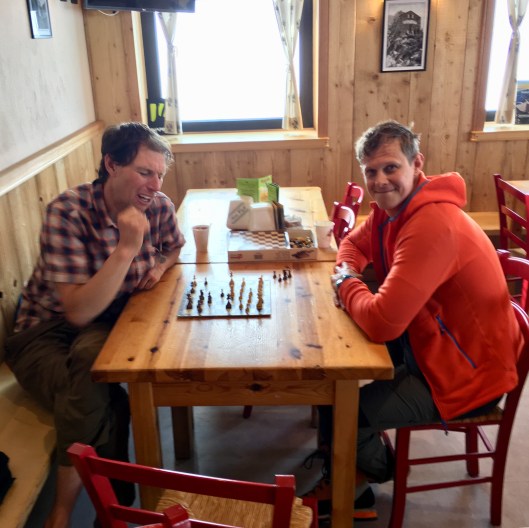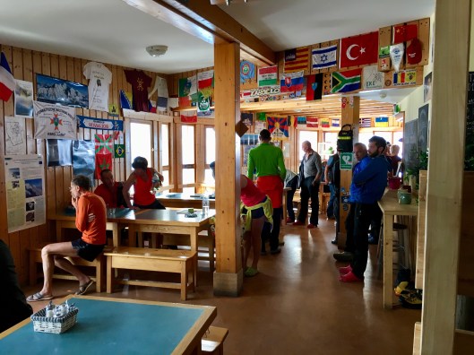 Fully ready for our big day in the Alps, and having packed our rucksacks yesterday evening we heading for the ‘sharps’ room at 4:30. The sharps room is where the items of mountaineering apparel not welcome in the dorms are kept. Items like crampons and ice axe of course but also less sharp but nonetheless unwelcome things like mountain boots, harness and rack, poles and helmet.