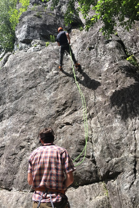 There was some interesting language spoken between words of encouragement. It wasn’t necessary to mention not looking down! That I am writing this tells you we were successful. Apparently this was the crux of the route and earned the entire traverse, full of other challenging and committing moves, an overall grading of AD+. Once safe, there were some hearty congratulations. Stephen had never climbed anything like this before. While I had done some hairy and airy Alpine work in the past I had never climbed above AD-. I didn’t take a photo of the move itself as my hands and knees were shaking too much. In fact it never crossed my mind as I was too busy cursing the laughing David, who had skipped over it and assured us we were well belayed.