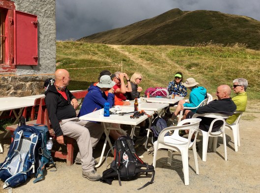 From dire weather for the first few days the second half of the trek was glorious. The original group of 9 had the additional 5 people join on day 4 and the group was enhanced by their presence – the only sadness being the early departure of Rob. We had been led and fed extraordinarily well throughout the week by Pascal and his innovative picnics and most of our accommodation had been great fun, if a little compact once or twice. Nobody sustained a significant injury and the Swiss economy had been assisted by the enthusiastic consumption of beer, wine and a little degustiv called Génépi. Despite the inevitable stresses and strains of an endeavor such as the Haute Route, many new friends were made and those of us who had trekked together before parted even better friends than we had been at the beginning.