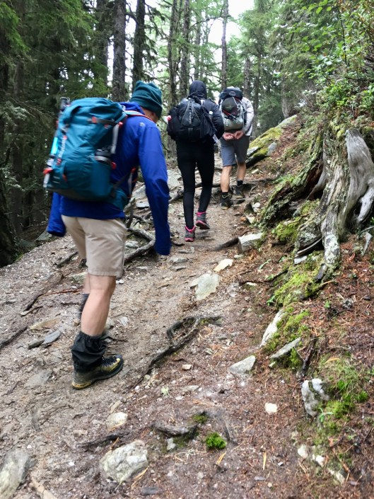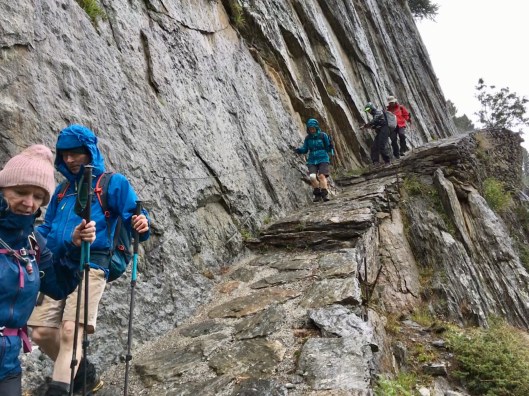 As if by way of a test of character the rocks were followed by a fairly preciptous and airy series of tracks clinging to the side of long drops. More than one person advised me to take care. I couldn’t imagine why so continued skipping along behind Pascal in order to get some photos of the others from ahead.
