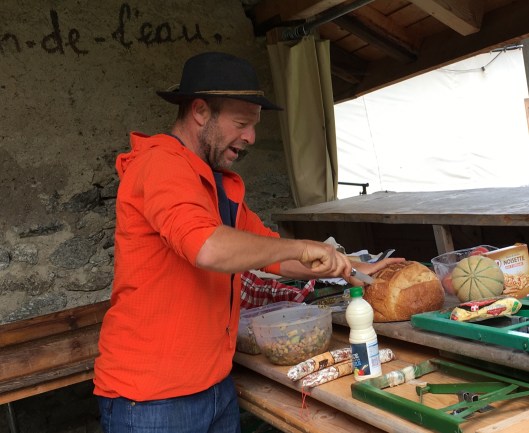 Our route took us to the side of the lac and then over the massive dam to a little cafe on the far side where we were to meet Yves. Yves is actually a very senior, extremely talented and knowledgeable Alpine guide in his own right. He is so much more than a driver and we were lucky that this week he supported Pascal with kit transfer.
