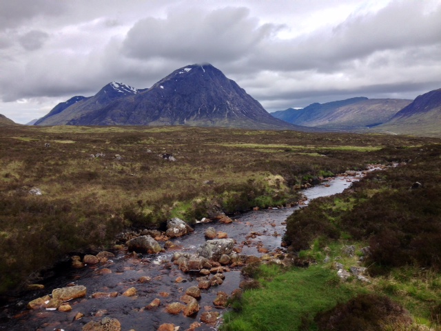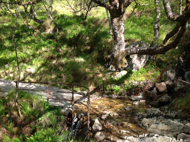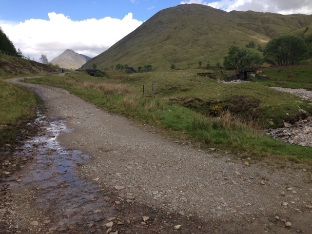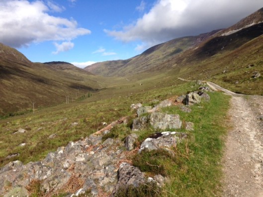 Wishing him good luck I moved on, pressing ahead along Wade’s military road through the valley, the huge and imposing Mamores to my right.