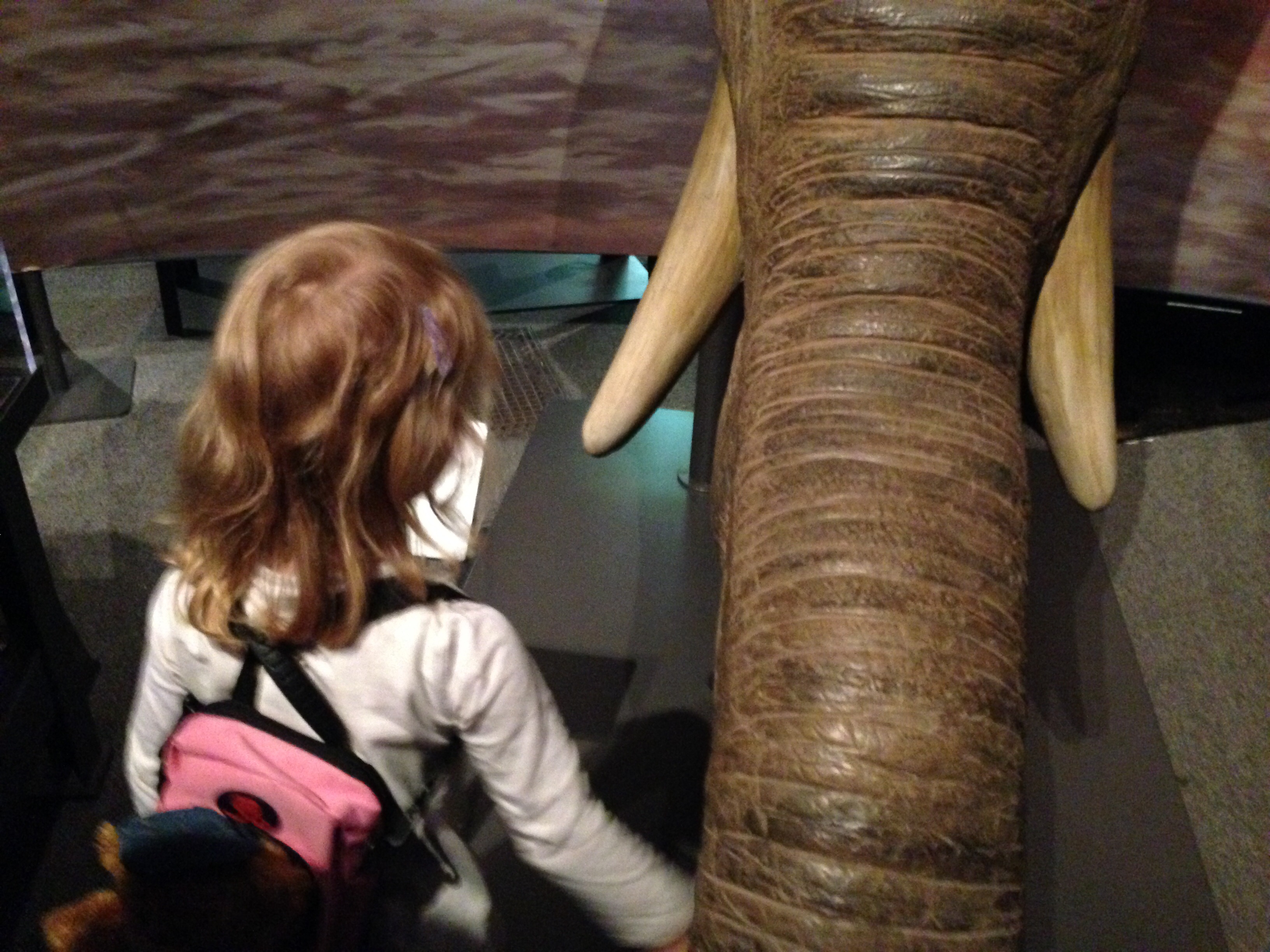What does this say Papa? So I can touch it? Really? Wooooooow. It’s a little elephant. Ok it’s a pigmy mammoth but it looks just like a little elephant. Yes it does have extra long tusks. Look here’s a bigger one. Phiomia? What’s that? Whys it called that Papa? Papa! Whys it called Phiomia? Ah, ok. Here’s one bigger still! Deinotherium? Hmm.